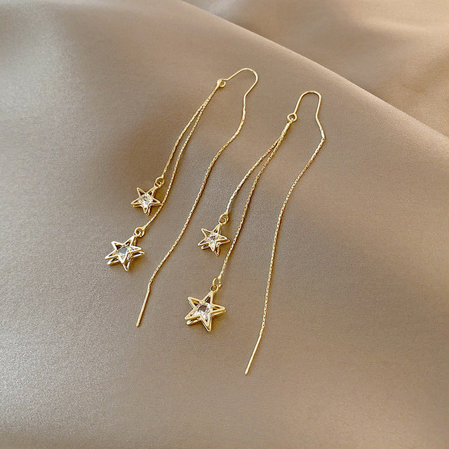 Aretes Colgantes Lluvia de Estrellas con Cristales en Oro