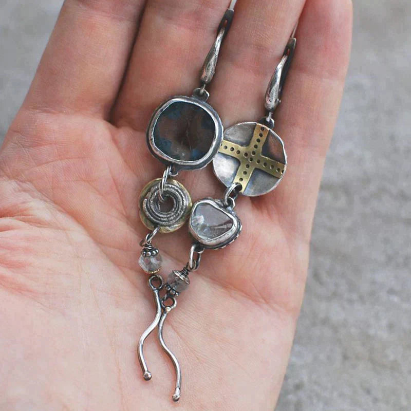 Aretes Cruz de Piedra Azul