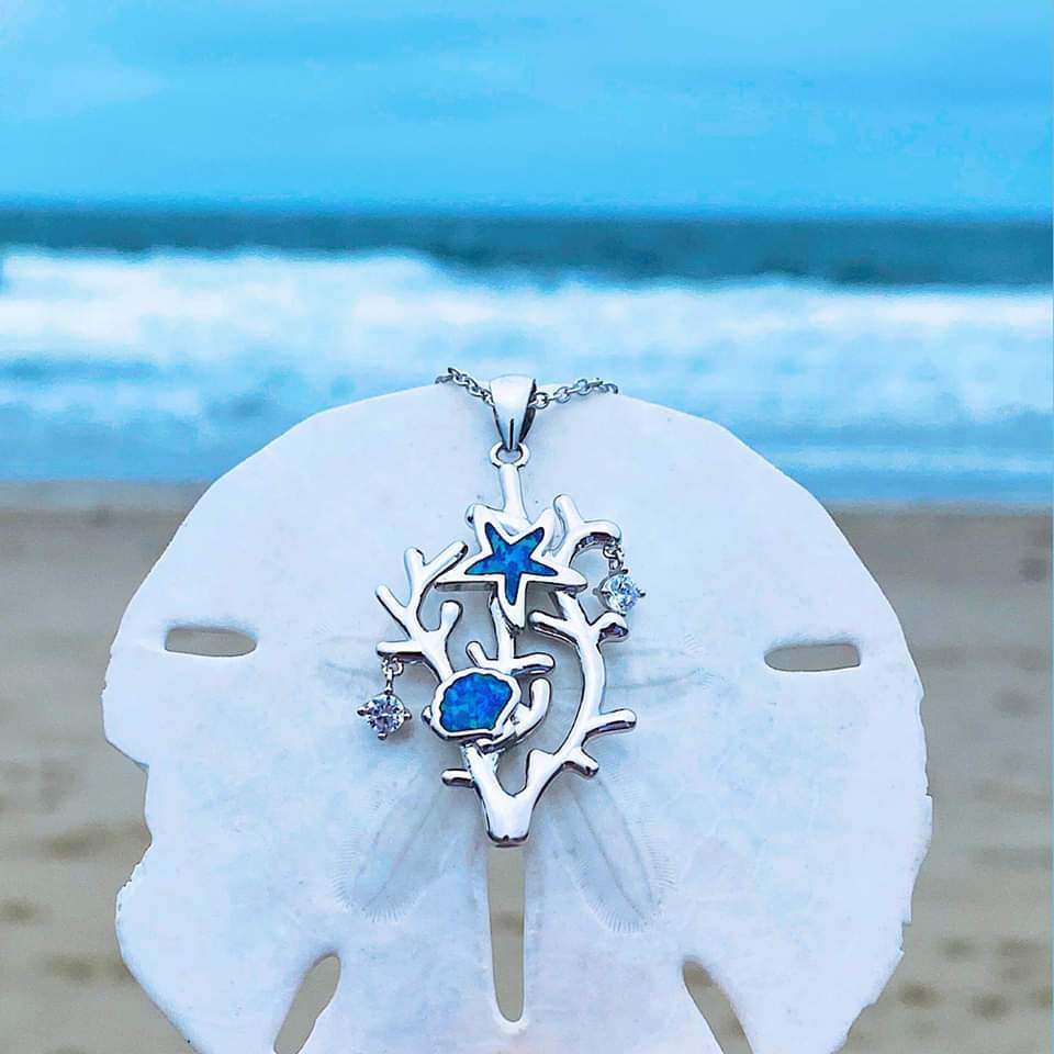 Conjunto Collar + Aretes de Tortuga Marina en Ópalo y Plata
