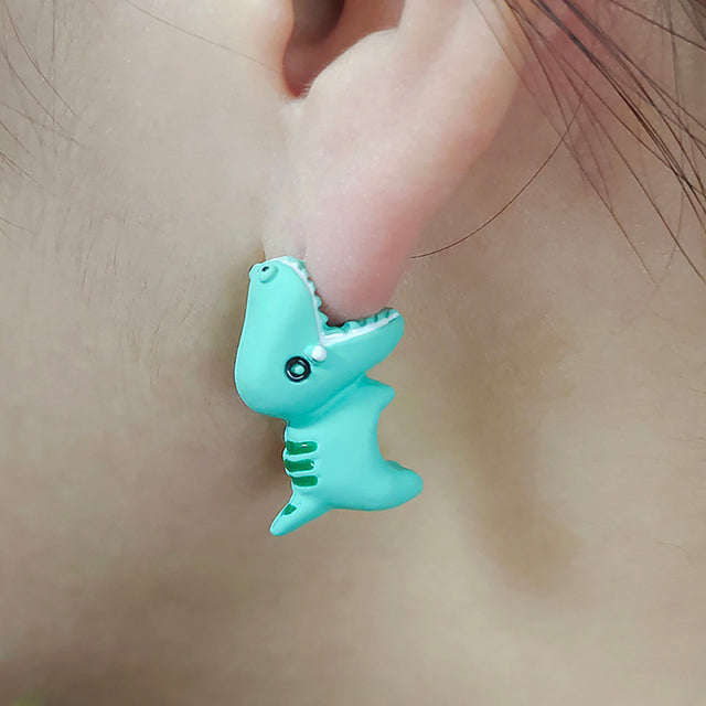 Pendiente Minimalista de Dinosaurio Verde de Cerámica