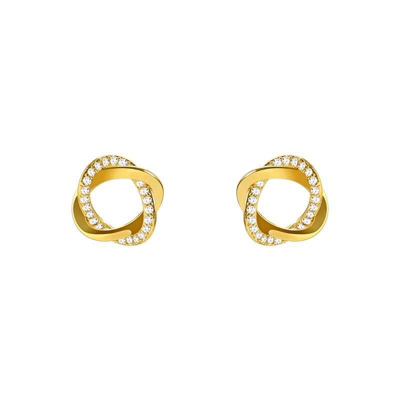 Conjunto Collar + Aretes Gatos Felices en Plata y Zirconio Pulido Blanco