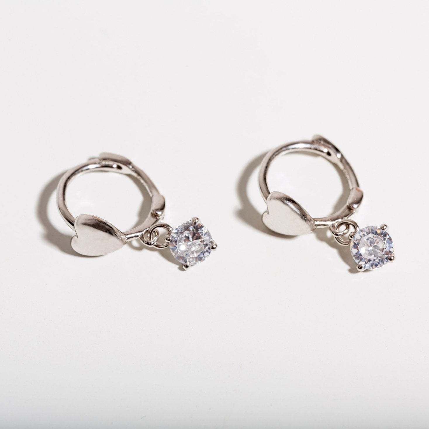 Conjunto Collar + Aretes Gatos Felices en Plata y Zirconio Pulido Blanco
