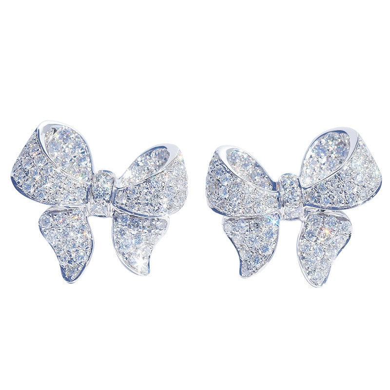 Conjunto Collar + Aretes Gatos Felices en Plata y Zirconio Pulido Blanco