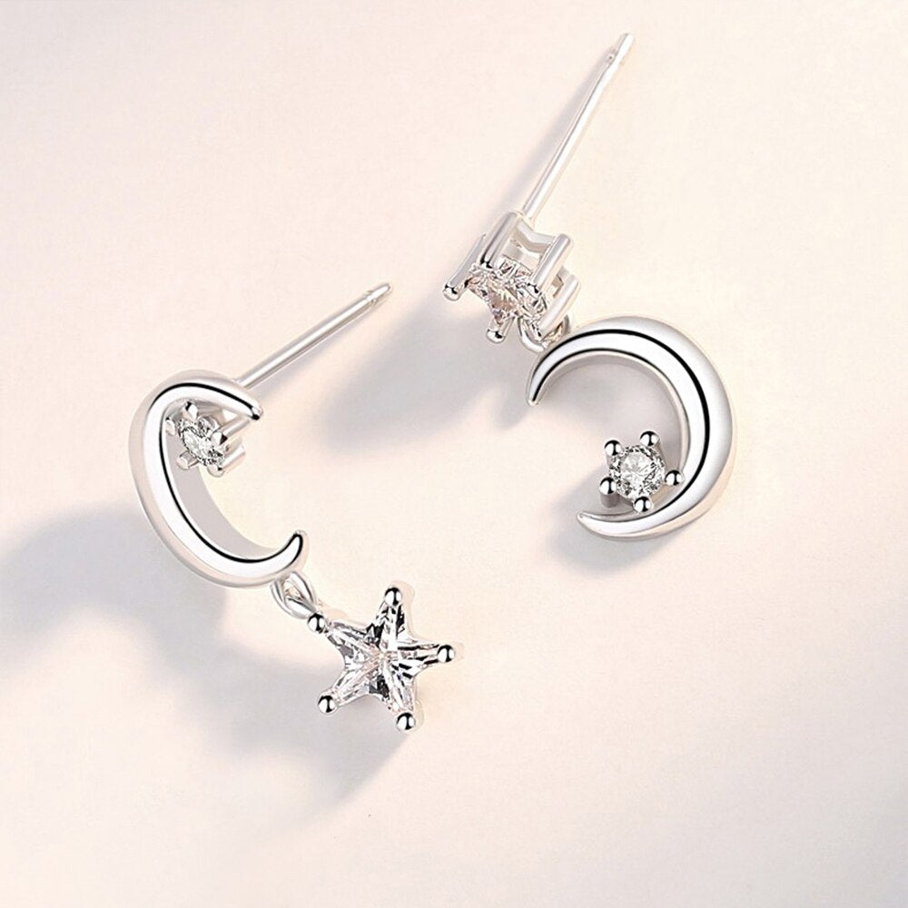 Conjunto Collar + Aretes Gatos Felices en Plata y Zirconio Pulido Blanco