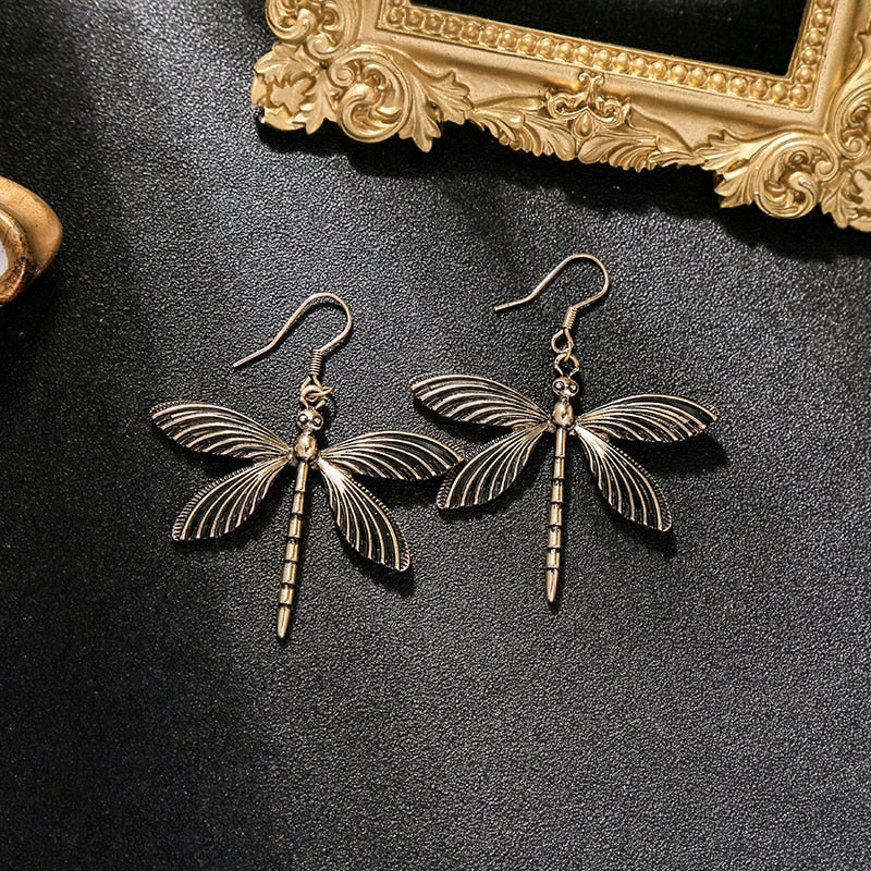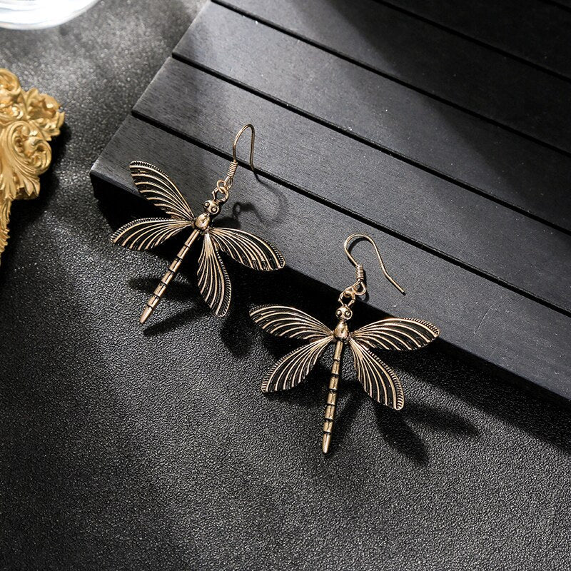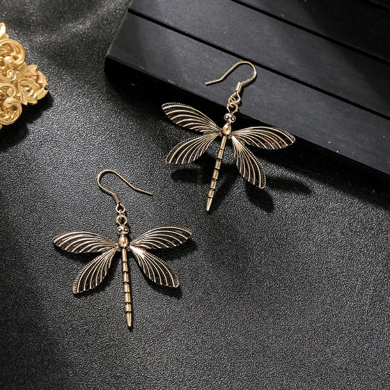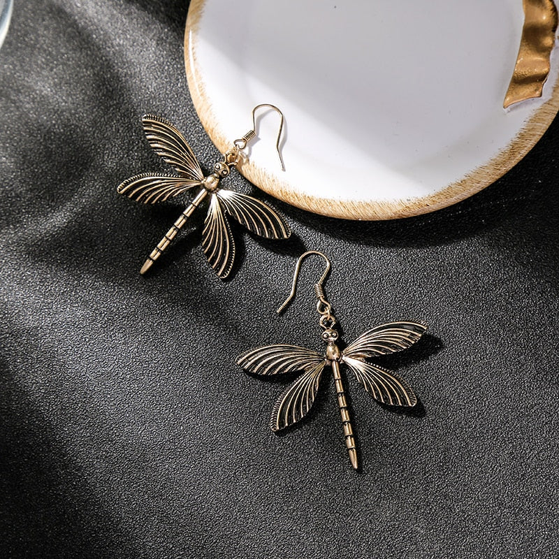 Pendientes Retro de Libélula en Plata Antigua